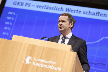 CEO Alois Vinzens zeigte sich zufrieden mit dem um 4.4 Prozent gesteigerten Konzerngewinn von 168.2 Millionen Franken. Mit einem Netto-Wachstum von 2.9 Prozent beim Geschäftsvolumen konnte die GKB ihre starke Position in Graubünden behaupten. «Das gute Resultat 2015 widerspiegelt die hohe Leistungsfähigkeit unserer Mitarbeitenden und unsere grosse Verbundenheit zu Graubünden. Dies drückt sich nicht nur im Geschäftsalltag aus, sondern auch in unserem Engagement gegenüber Umwelt und Gesellschaft.» Freiwilligeneinsätze von Mitarbeitenden in sozialen Projekten gehörten, so Vinzens, genauso dazu wie ein grosszügiges Mäzenatentum, Sponsoring oder die bankeigene Sammlung zeitgenössischer Bündner Kunst.