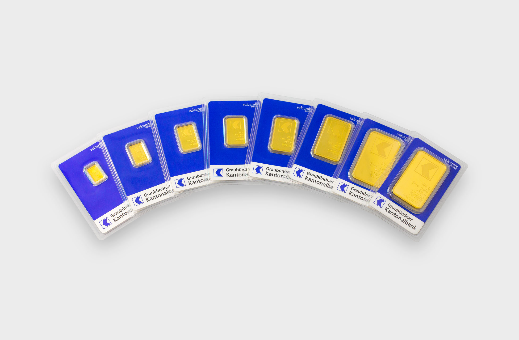 Noi vi offriamo la possibilità di acquistare fisicamente oro, argento o platino in lingotti o monete. Coloro che preferiscono non conservare i metalli preziosi fisici in casa, possono custodirli presso la Banca Cantonale Grigione in